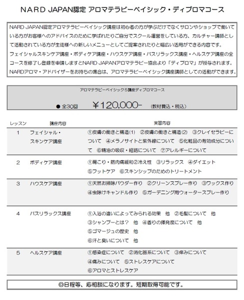 ナードのアロマ・ベイシック講座は、ナードの入門的な講座。