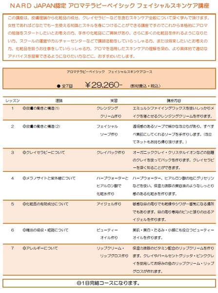 NARD JAPAN認定アロマ・ベイシック フェイシャルスキンケア講座