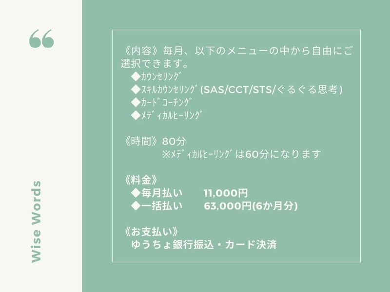 ◆毎月優先的にカウンセリング・ヒーリングのご予約をおとりいたします。