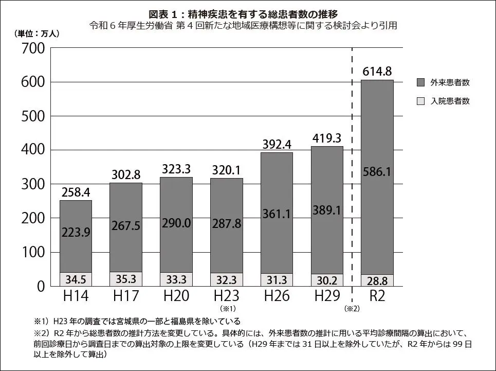 このようにどんどん精神疾患の患者さんは年々増加しています