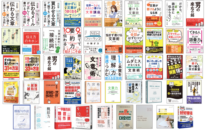 著書は『何を書けばいいかわからない人のための「うまく」「はやく」書ける文章術』『9割捨てて10倍伝わる「要約力」』(共に日本実業出版社)『伝わる文章が「速く」「思い通り」に書ける 87の法則』(明日香出版社)『ファンが増える!文章術――「らしさ」を発信して人生を動かす』(廣済堂出版)ほか20冊以上。言葉と伝え方の本質をとらえたノウハウは言語の壁を超えて高く評価されており、中国、台湾、韓国など海外でも15冊以上が翻訳されている。
