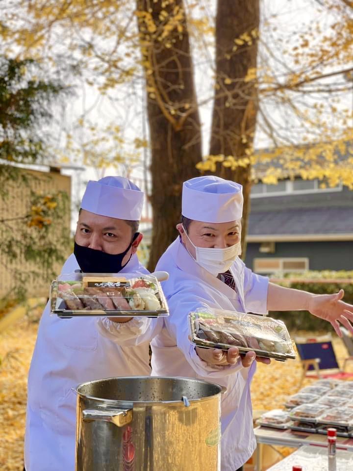昨年は境内で肉寿司握っていただきました
