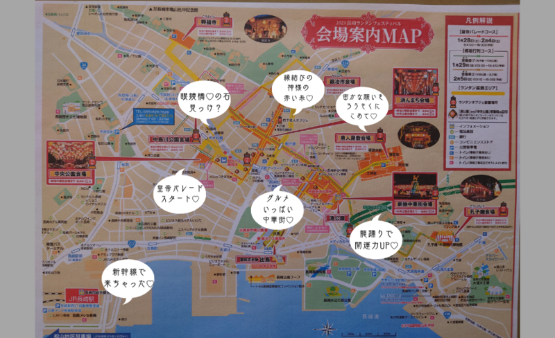 長崎新地中華街をはじめ、湊公園、中央公園、眼鏡橋周辺、浜市・観光通りアーケードなど長崎市内の中心部に約15,000個にも及ぶ極彩色のランタン(中国提灯)や、大型オブジェが幻想的に飾られ、街を彩ります。