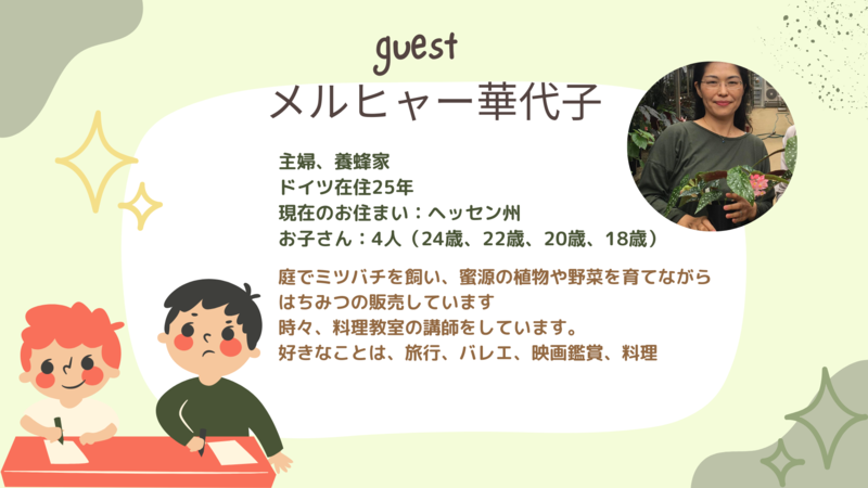 それぞれ、チエコさんは3人、トシコさんは3人、カヨコさんは4人のお子さんのお母さんです。日本の教育とドイツの教育の両方を経験されています。