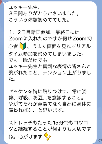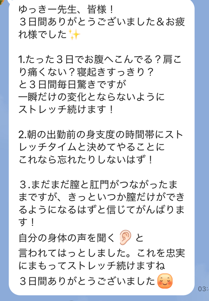 (毎日15分前後のストレッチ動画のリンクをLINEグループ内でお知らせします。)