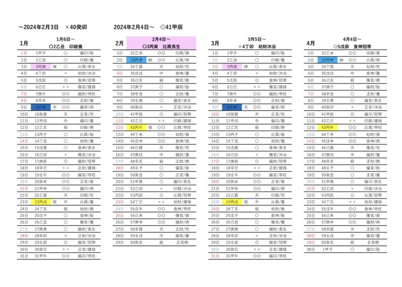 運勢カレンダー例