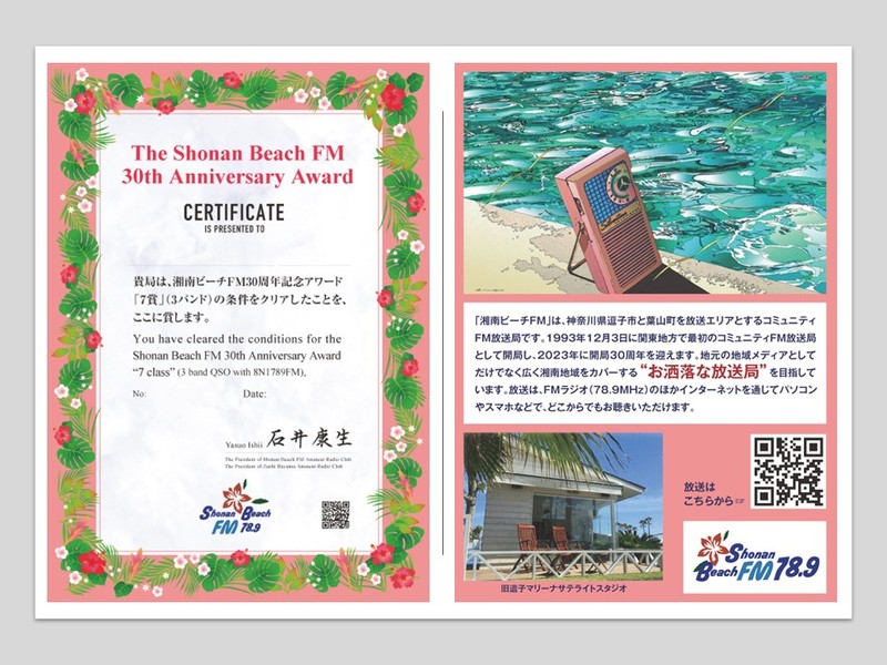 ○8N1789FMを含む三浦半島エリア30局以上と交信すること。