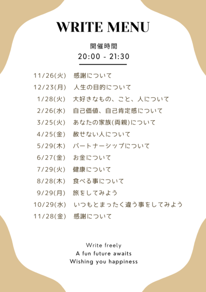 【Zoom】12月のテーマ「感謝について」の書き出しワーク会
