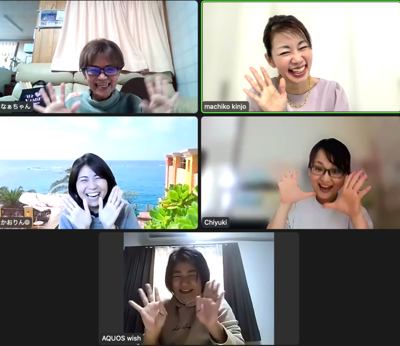オンラインで参加させて頂きました。人見知りなので不安が大きかったのですが、まちこさんの優しい問いかけに安心できたり、一緒に参加されていた方のお話や価値感に触れ、私自身振り返りができたり、感化されたりと、勇気を出して申し込みして良かったなぁと思いました。
