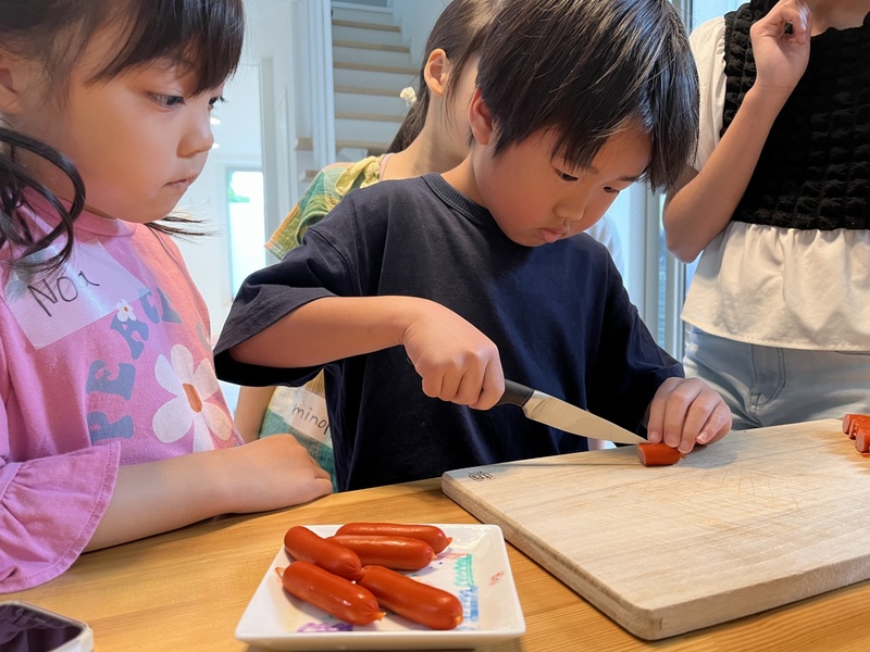 今回で2度目の参加でした。私が億劫に感じてしまい、なかなか家でやらせてあげられないお料理やお菓子作りをお友だちと体験できる。しかも英語で!!