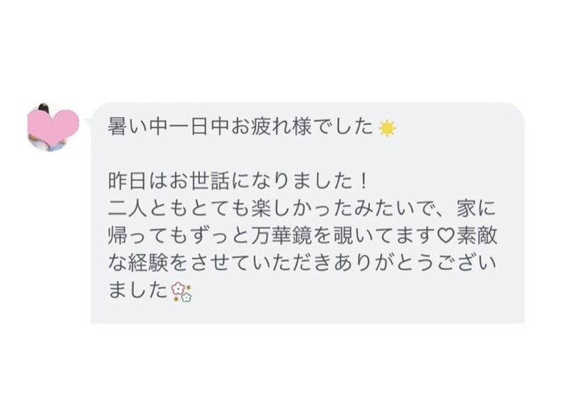 万華鏡に興味を持った長男にと思い、行きました5歳には早かった?とドキドキでしたが、まさかの、家で聞いてみたら、色々と習得していてビックリ