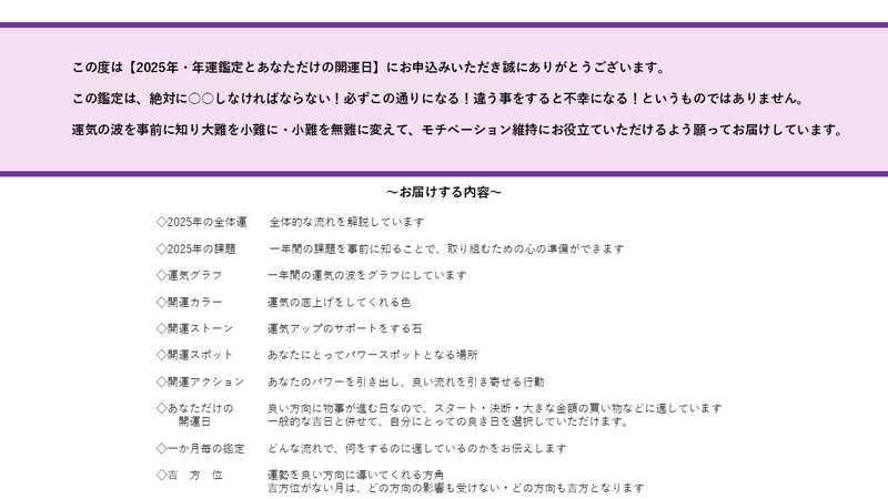 ▼鑑定内容の見本はこちら▼(2025年の見本)