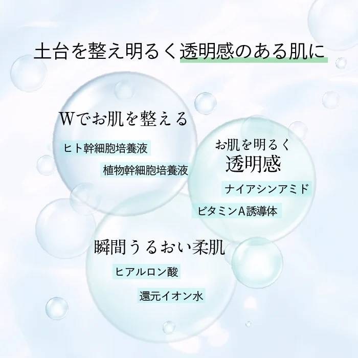 半世紀以上に渡って、常にスキンケアを追求して来た美肌研究家・白川みきさん自身が感動した!というヒト幹細胞培養液と植物幹細胞を惜しみなく配合した、まさに《次世代のコスメ》です。